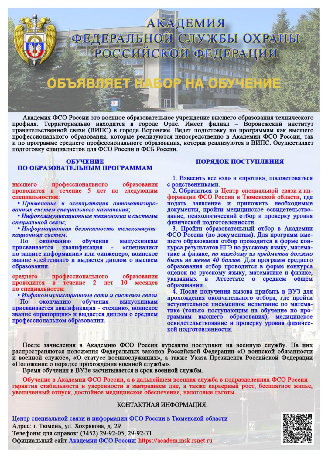 ИНФОРМАЦИЯ ОБ УСЛОВИЯХ И ПОРЯДКЕ ПРИЕМА В АКАДЕМИЮ ФЕДЕРАЛЬНОЙ СЛУЖБЫ ОХРАНЫ РОССИЙСКОЙ ФЕДЕРАЦИИ